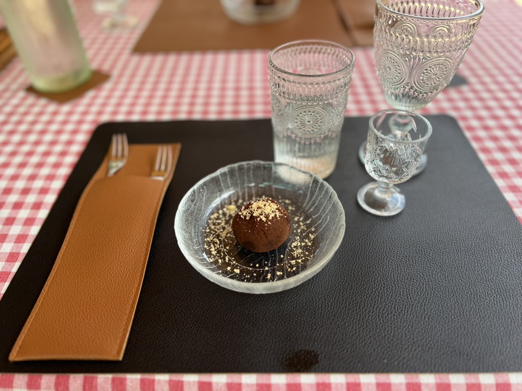 - Boissons incluses : vin local, eau-de-vie de truffes et eau en bouteille