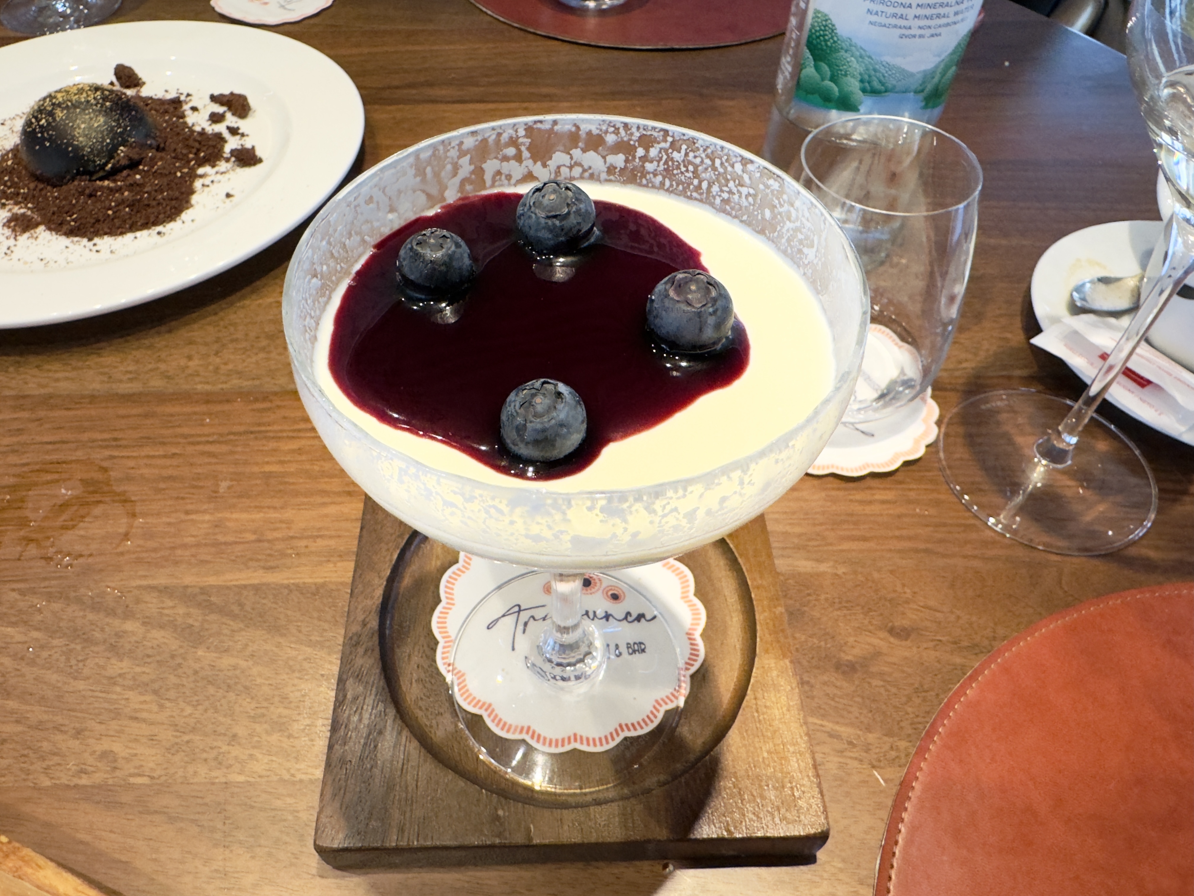 Savourez un délicieux déjeuner de 3 plats, alliant des saveurs traditionnelles et des vins exquis provenant de vignobles locaux. Le repas commence par l'Imotski ušćipak, un plat savoureux à base de peau de porc rôti, de fromage fait maison et d'oignons, parfaitement accompagné du Kujundžuša Katich 2022. Pour le plat principal, vous pouvez choisir entre la rose de veau farcie au prosciutto et au fromage, servie avec des gnocchis à la romaine, ou la traditionnelle pašticada Imotski avec des gnocchis faits maison, accompagnée du Trnjak Riserva Grabovac 2018. En dessert, dégustez la Bikla, une création unique à base de lait, de réduction de vin rouge et de mousse, garnie de bleuets frais, accompagnée du Bommary Degarra. Pendant le déjeuner, notre serveur vous guidera à travers chaque plat et son accord avec le vin, vous offrant des informations sur les saveurs locales et les traditions culinaires. De l'eau en bouteille sera également mise à votre disposition sur la table.