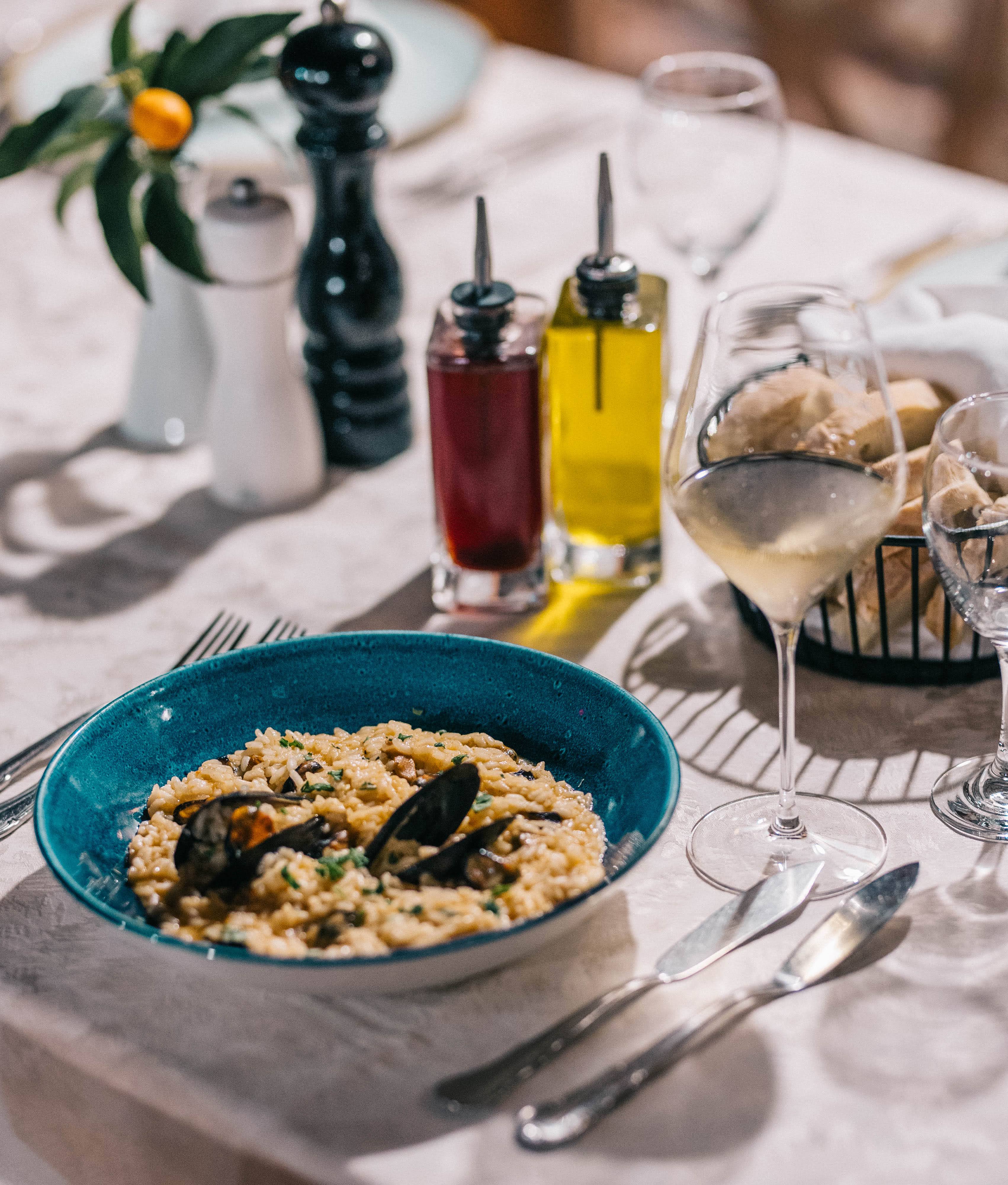 - Traditional stew (cro. Buzara) with Bota’s sea pearls (St. Jacobs cup, Noah’s ark shell, Venus clams, mussels & prawns)