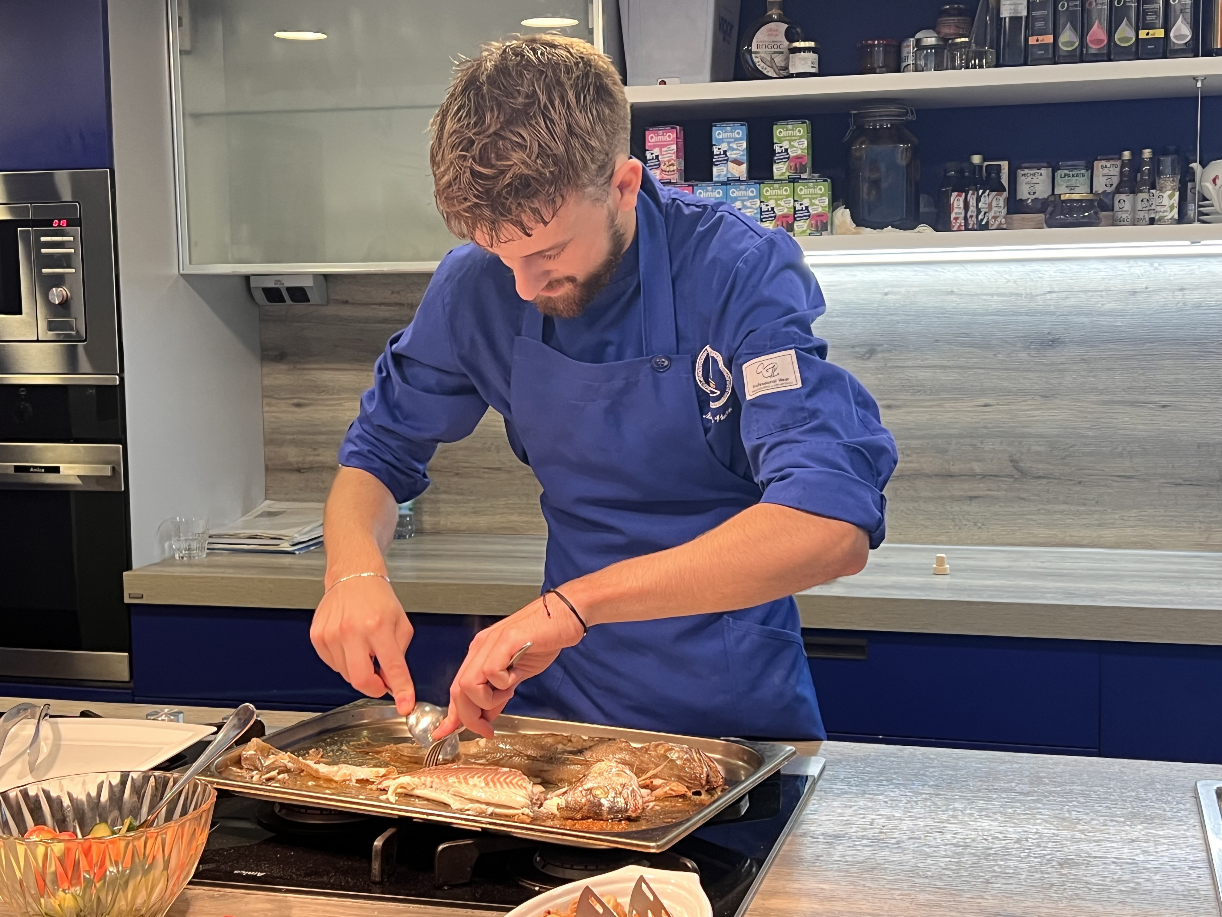 Lors de cette expérience interactive, vous préparerez avec le chef un délicieux déjeuner en cinq plats. Sous sa direction, vous réaliserez des spécialités dalmates traditionnelles comme du pain maison, du carpaccio, du risotto, la gregada (ragoût de poisson) ou encore des pâtes fraîches faites maison. Le menu met généralement à l’honneur le poisson frais de l’Adriatique, les fruits de mer et les crevettes, accompagnés de légumes et d’herbes locaux.