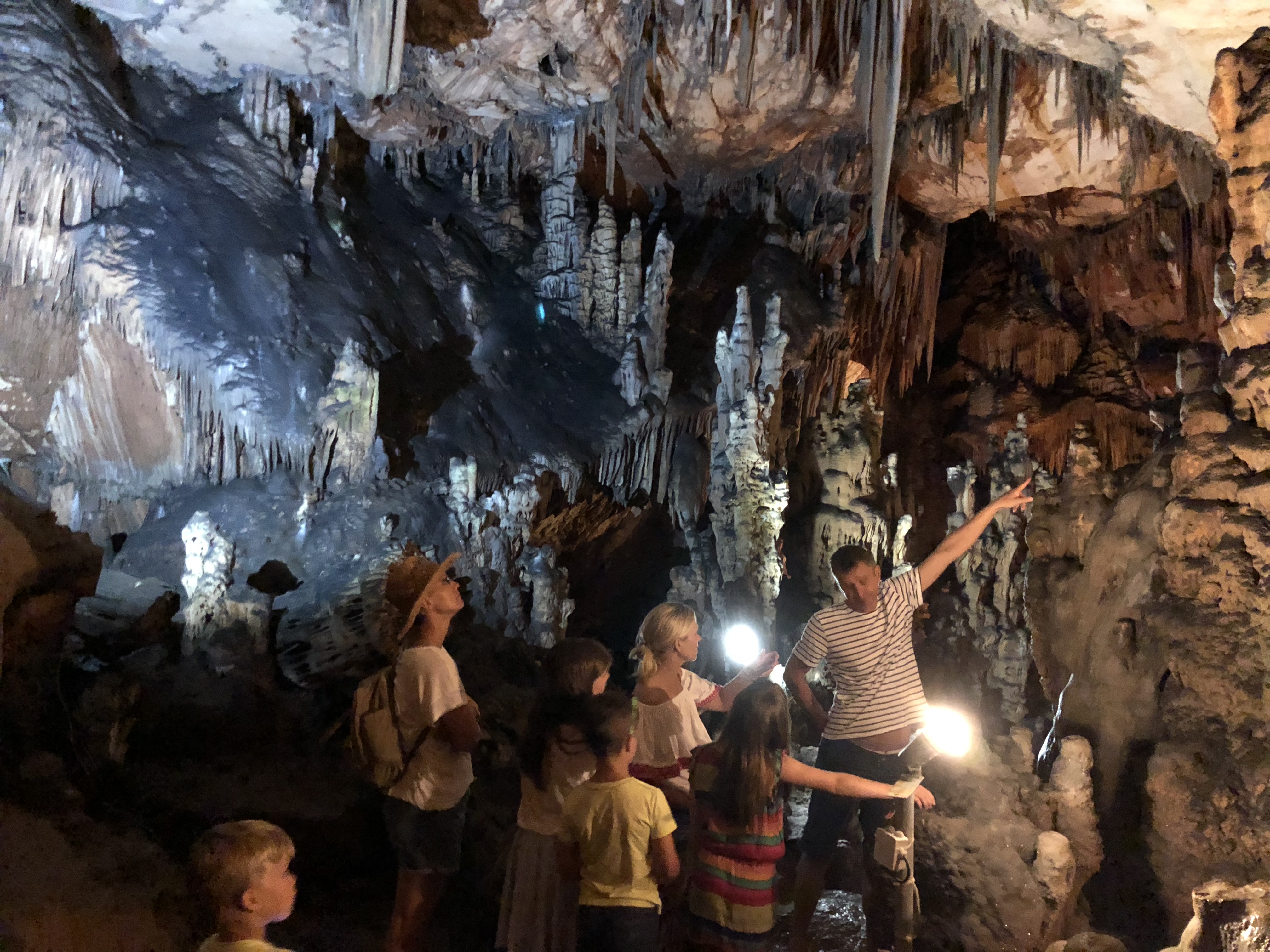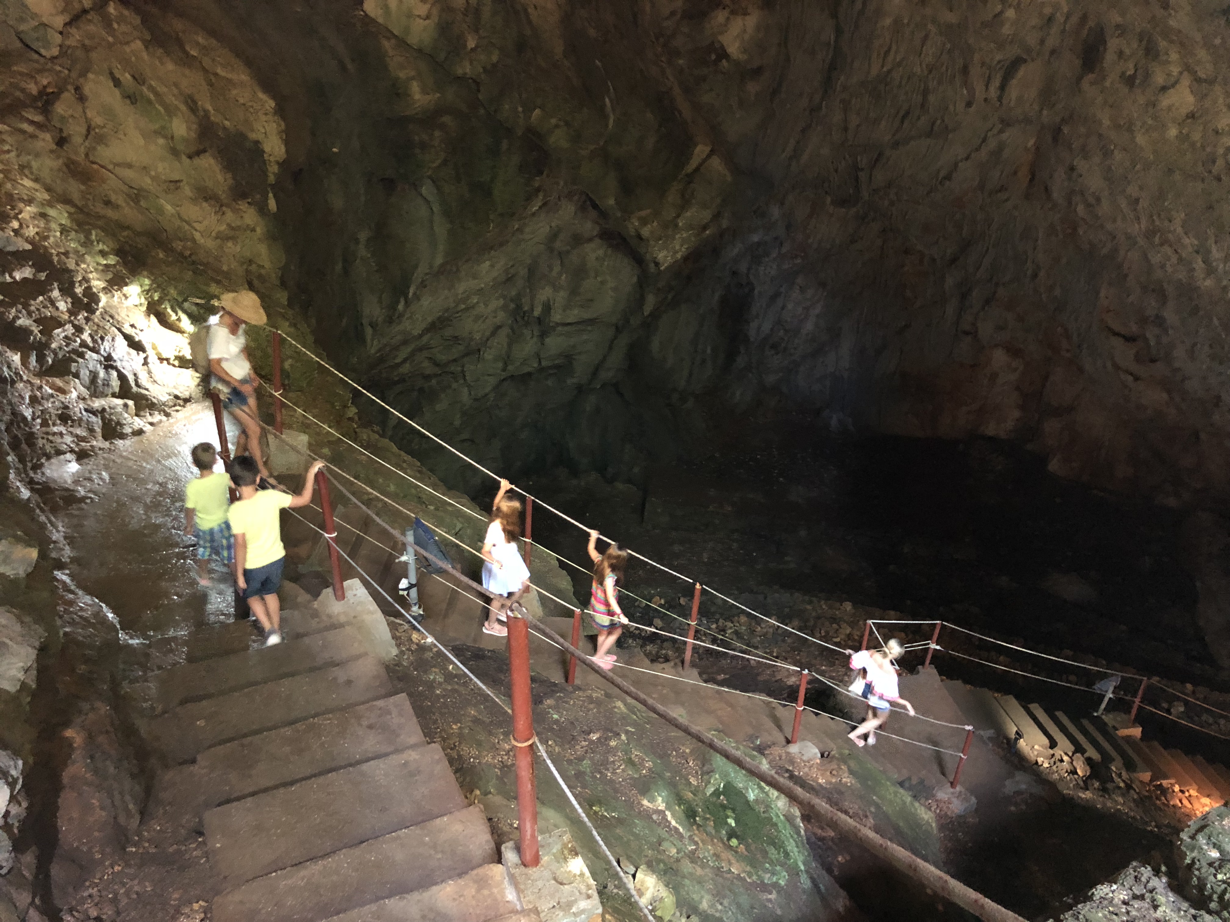 Tauchen Sie ein in die Höhle, indem Sie die Treppen hinabsteigen, und lassen Sie sich von den einzigartigen Gesteinsformationen faszinieren. Der Abstieg zur Höhle beträgt etwa 65 Meter. Diese Höhle besteht aus zwei großen Hallen, in denen Sie Stalaktiten, Stalagmiten und beeindruckende Steinvorhänge in verschiedenen Formen und Farben bewundern können. Die Temperatur in der Höhle bleibt konstant bei angenehmen 15 Grad. Für dieses unterirdische Abenteuer sollten Sie unbedingt eine Jacke und festes Schuhwerk mitbringen.