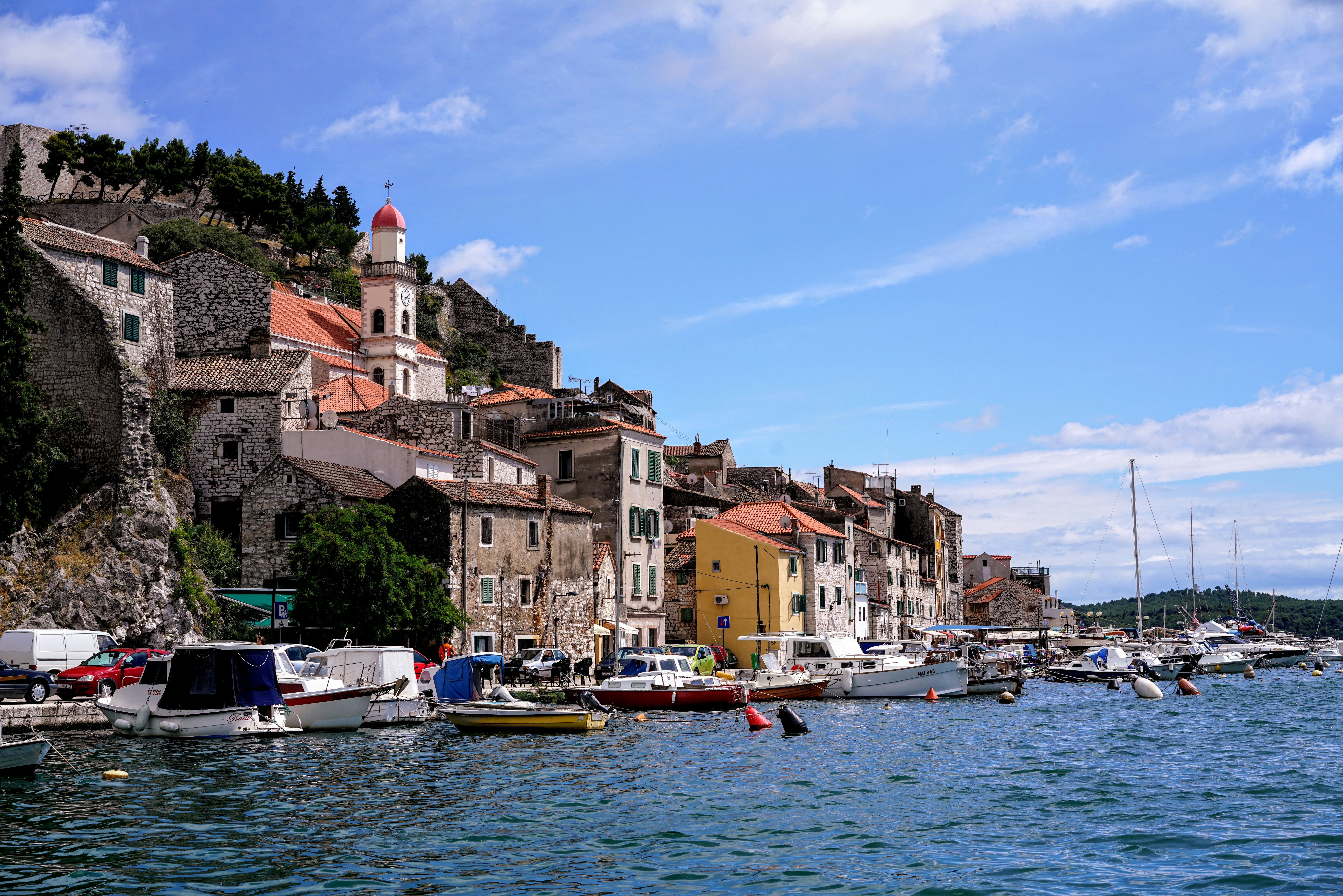 Šibenik, l’une des plus anciennes villes croates, mentionnée dès 1066, séduit par son authenticité et les traces visibles de l’influence vénitienne. Vous visiterez la cathédrale Saint-Jacques, classée au patrimoine mondial de l’UNESCO et remarquable par son architecture. Vous découvrirez également la forteresse Saint-Michel, liée au patrimoine UNESCO, offrant une vue panoramique exceptionnelle sur la ville et la côte.