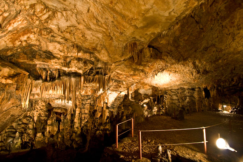 Immerse yourself in the cave by descending the stairs and marvel at the unique rock formations. The descent to the cave is about 65 meters. This cave consists of two large halls where you can admire stalactites, stalagmites, and impressive stone curtains in various shapes and colors. The temperature in the cave remains constant at a pleasant 15 degrees Celsius. For this underground adventure, be sure to bring a jacket and sturdy footwear.