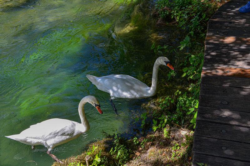 Die Boote fahren direkt bis zum nächstgelegenen Steg am Skradinski Buk. Von dort aus erkunden Sie den Nationalpark zu Fuß auf gut ausgebauten Holzwegen entlang der beeindruckenden Wasserfälle und durch die unberührte Natur.